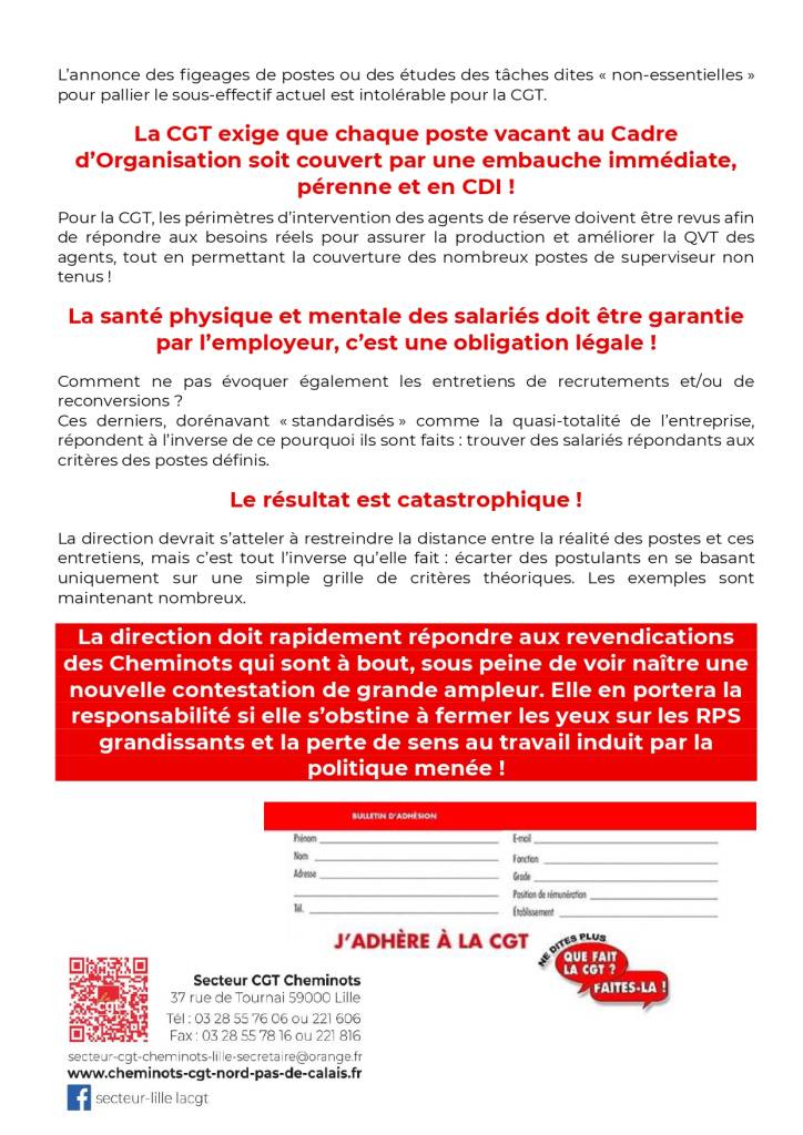 La CGT exige que chaque poste vacant au Cadre d’Organisation soit couvert par une embauche immédiate, pérenne et en CDI !