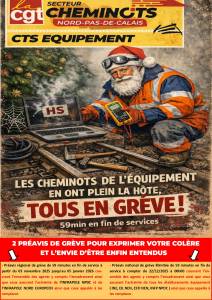 TELECHARGER LE TRACT CI-DESSOUS https://www.cheminots-cgt-nord-pas-de-calais.fr/wp-content/uploads/2026/02/tract-CTS-equipement-avance-es-SE.docxxw.pdf DES AVANCÉES NOTABLES GRÂCE À LA MOBILISATION !Depuis le 03 novembre 2025, les agents du Service Électrique de l’INFRAPOLE NPDC et de l’INE se mobilisent massivement à l’appel de la CGT.Cette mobilisation, locale qui s’inscrit dans un mouvement national impulsé par la seule CGT, a
