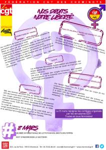 Préavis de grève de la fédération La CGT des Cheminots couvrant le 8 mars : pour une journée internationale de lutte pour des droits des femmes qui doit s’inscrire dans le quotidien, rejoignez les cortèges organisés par les structure de la CGT !